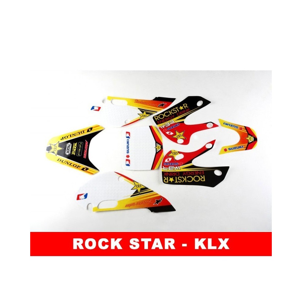 Adhesivos rock star para pit bike con plastica KLX.