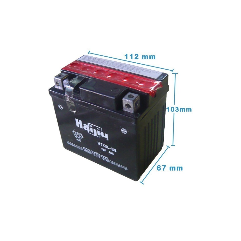 Bateria 12v 4ah acido-plomo AGM, marca Haijiu HTX5L-BS de ácido-plomo AGM para motos (quad, pit bike y buggy...)