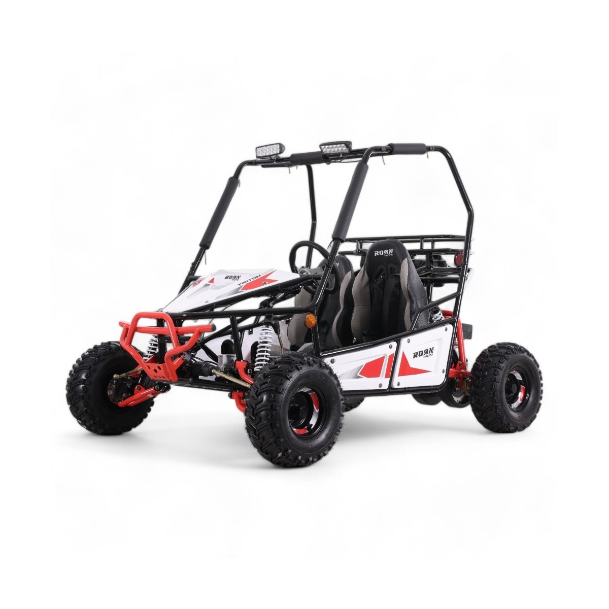 El Roan Triton 125 es el buggy infantil más completo del mercado. Equipado con un motor de 125cc, frenos de disco hidráulicos y una suspensión de alta calidad, este vehículo ofrece un rendimiento excepcional y una seguridad sin igual. Su diseño ergonómico y sus materiales resistentes lo convierten en el compañero ideal para los jóvenes pilotos. ¡Potencia, seguridad y diversión en un solo vehículo!