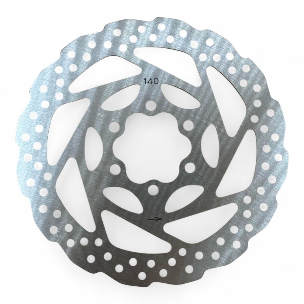 Este disco freno 140mm Warrior Roan MX-E350 se monta tanto en la rueda delantera como trasera, y cuenta con anclaje de 6 tornillos estándar.