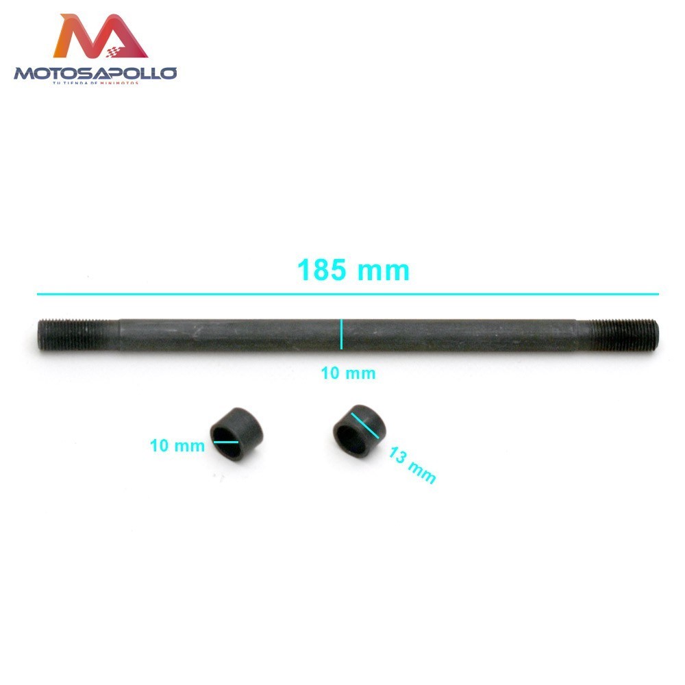 Eje rueda delantera minimoto de 6.5 pulgadas. Eje de 10 mm doble rosca.