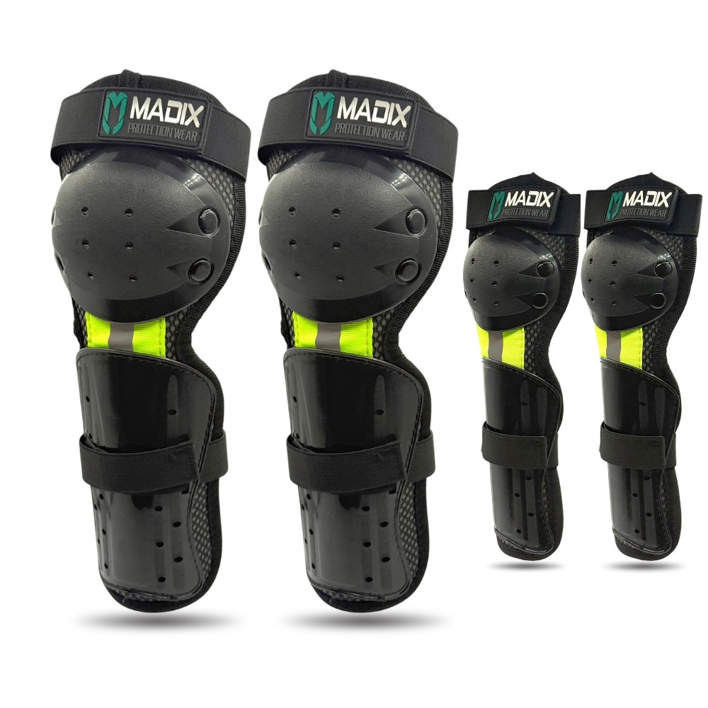Rodilleras y coderas infantil de cross, enduro o miniquads. Kit de protección infantil desarrollado con altos estándares de seguridad para la práctica de motocross, enduro. Su diseño ergonómico y ajustable permite una adaptación tanto a codos y rodillas para un manejo estable y seguro.
