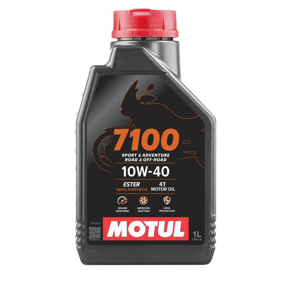 el Lubricante Motul 7100 4T 10W40 profesional. Este aceite sintético de altas prestaciones, basado en tecnología de Éster, ofrece una resistencia al cizallamiento inigualable y una protección térmica superior. Diseñado para motores de 4 tiempos en condiciones de competición, tanto en circuitos de asfalto como en exigentes trazados off-road.