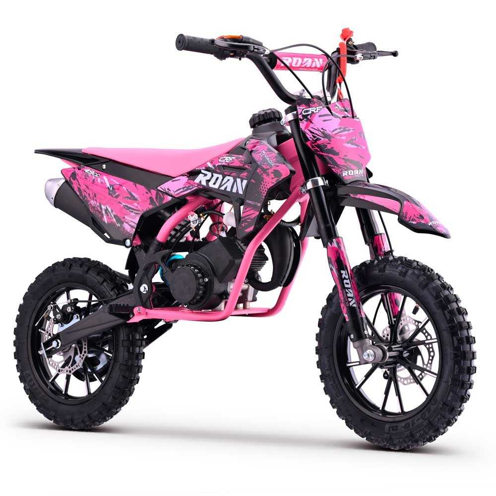 Minimoto Cross 49cc Roan CRF 10/10" 3.5cv altura del suelo al asiento de 32cm a 60cm, con una velocidad máxima de 40km/h y llantas de 10''