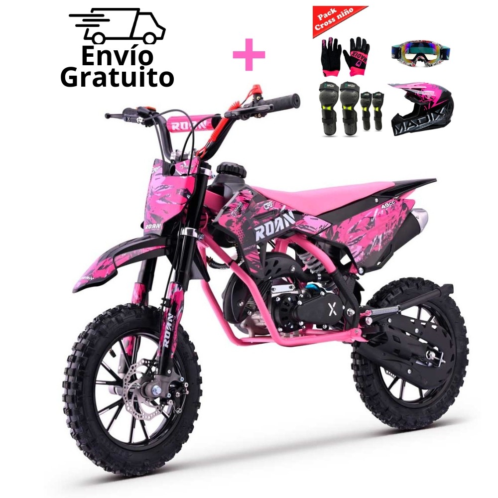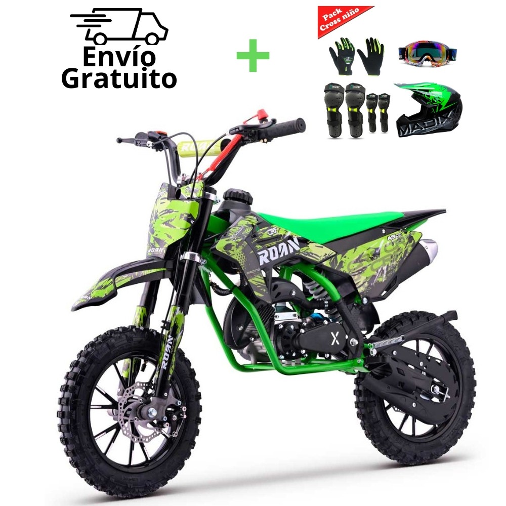 El Pack Minimoto Roan CRF50 + Equipación Infantil Pro une diversión, potencia y seguridad en un solo conjunto. Incluye la minimoto Roan 49cc CRF y un completo pack de equipación de cross infantil, con envío gratuito.