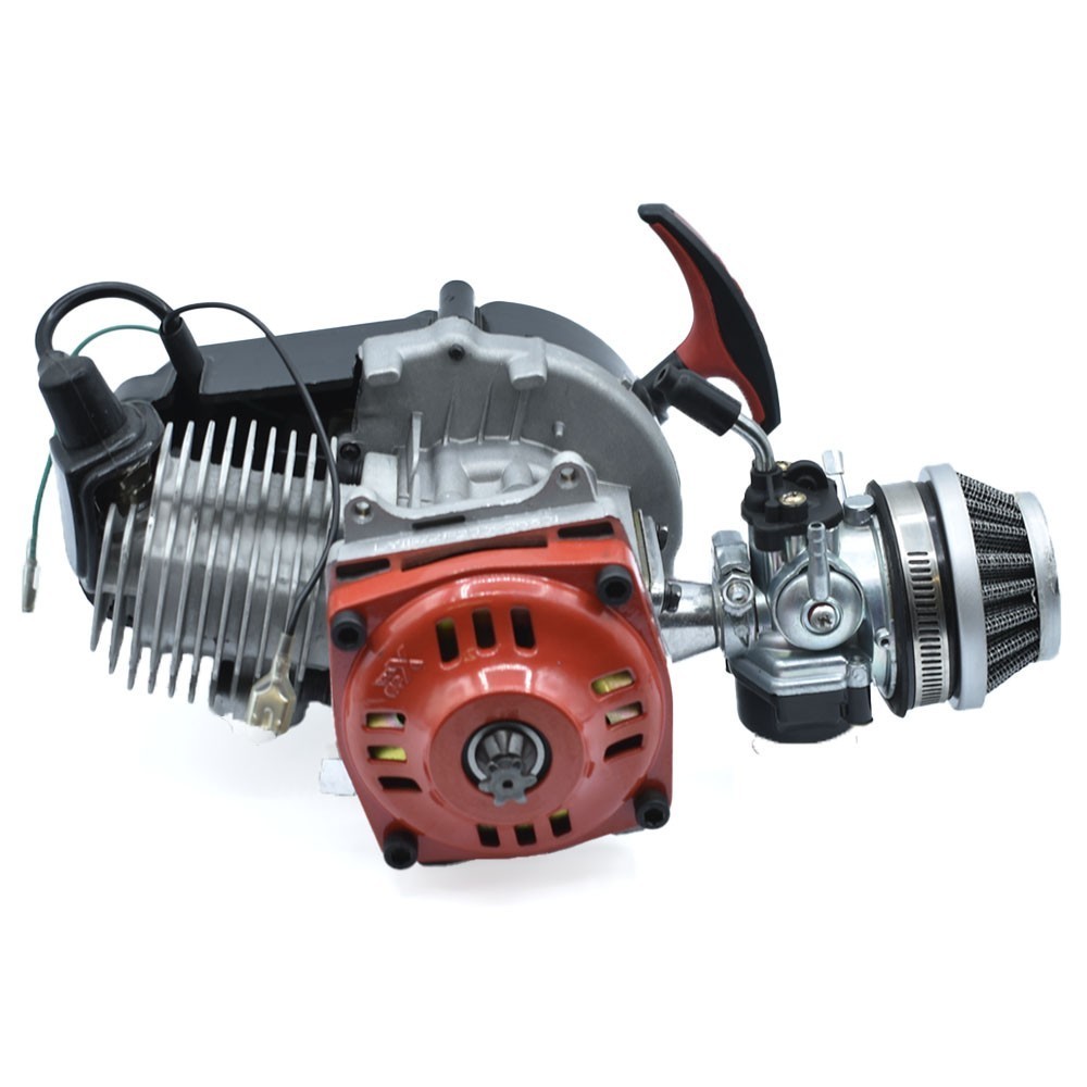 Motor 2 tiempos 49cc minimoto de alta resistencia y durabilidad. Fácil de instalar y adaptable a diferentes vehículos según la medida.