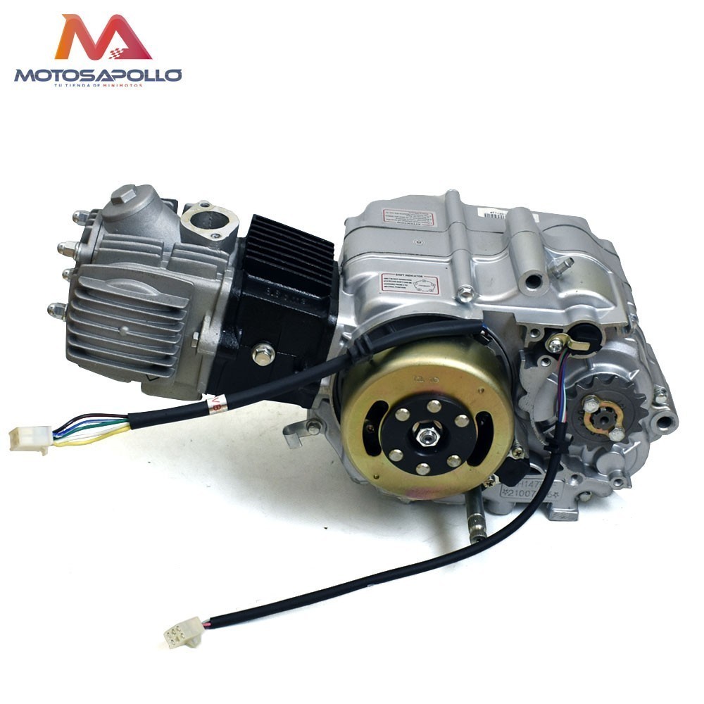 Motor pit bike semi-automático N-1-2-3-4 de 90cc TZH. Sigue disfrutando de tu pit bike con el motor de 90cc semi-automático, que te brinda un alto rendimiento, disipando el calor en forma rápida y generando un rendimiento sostenible de tu vehículo.