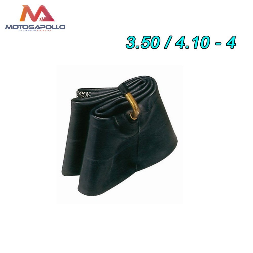 Cámara aire TKM 3.50/4.10-4 . Fabricado de caucho butílico de alta calidad, resistente al desgaste, resistente a las altas temperaturas y duradero. Con gran resistencia a los golpes puede hacer frente a los baches. Válido para minimotos , miniquad, patinetes o cualquier otro vehículo que tenga la misma medida.