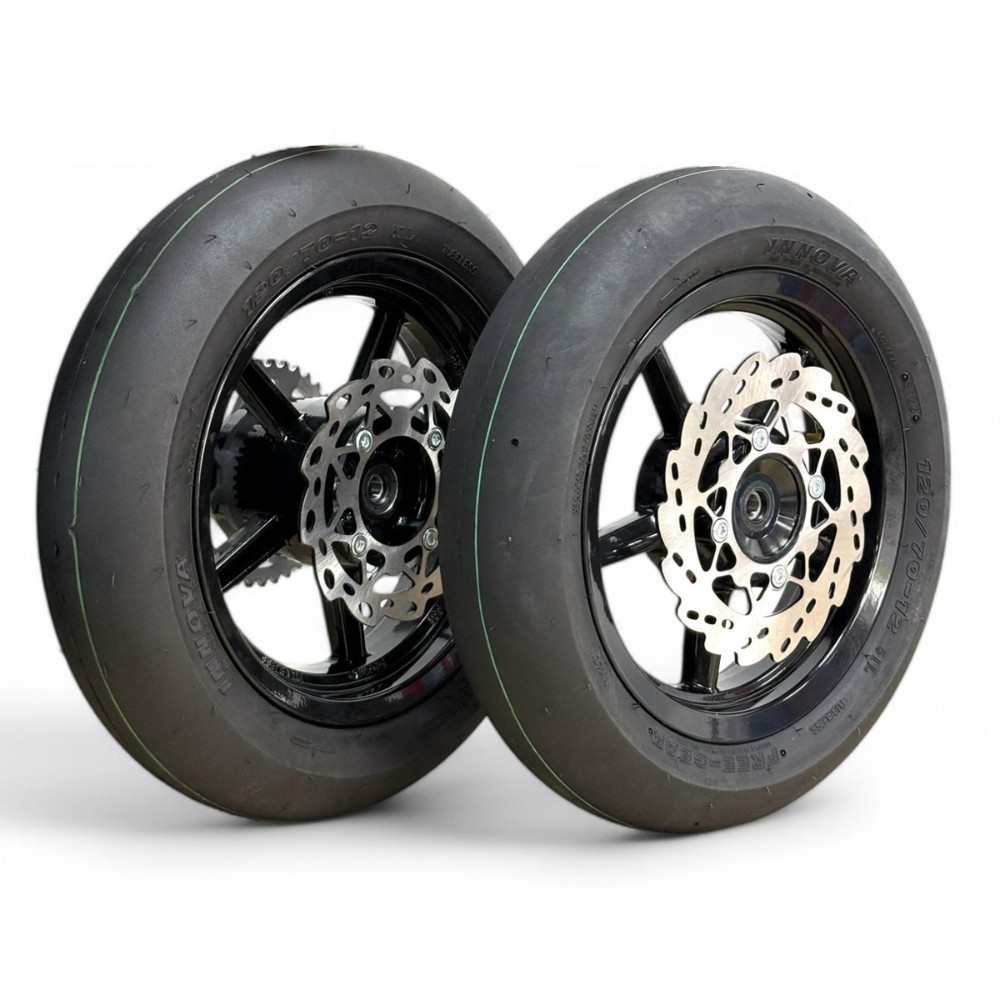 Juego ruedas supermotard 12"/12" están diseñadas para ofrecer el máximo agarre, estabilidad y control en cada curva. Su estructura robusta y equilibrada garantiza un rendimiento excepcional, ya sea en circuitos o en carreteras.