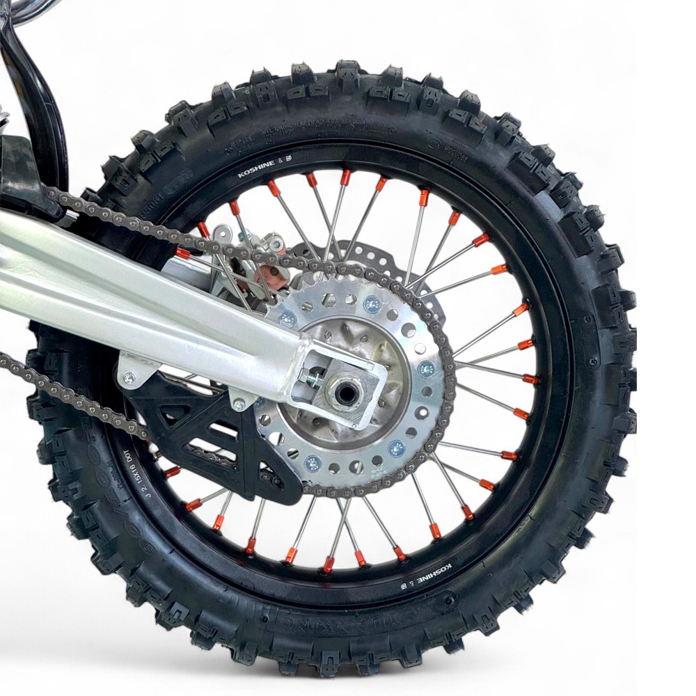 La pit bike SX105 105cc 2T llega a Roan Racing para ofrecer potencia, fiabilidad y un diseño inspirado en las grandes motos de motocross. Con su motor refrigerado por agua de hasta 30 CV, transmisión de 6 velocidades y suspensiones regulables