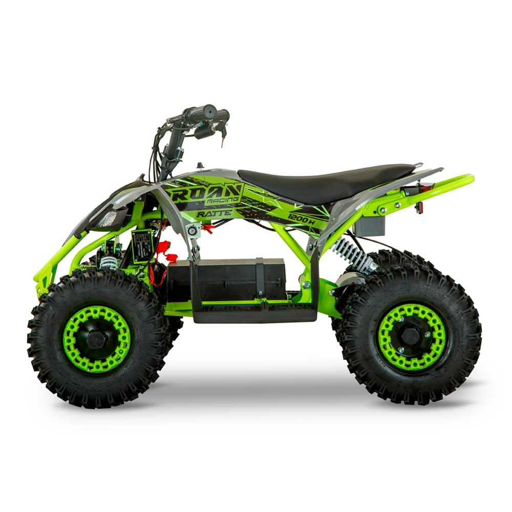 En RoanRacing presentamos el miniquad eléctrico Ratte 1200w con 4 baterías de 12v 12ah y ruedas de 6 pulgadas.