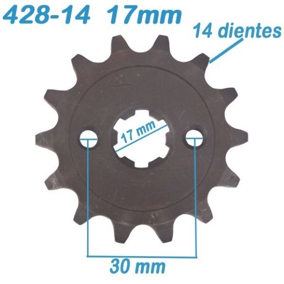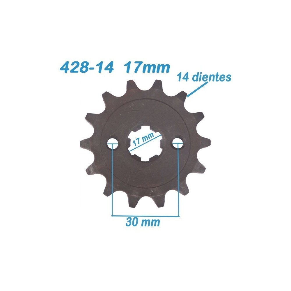 Piñon ataque de 14 dientes para cadena paso 428 eje de 17mm para pit bikes, quads, buggies...