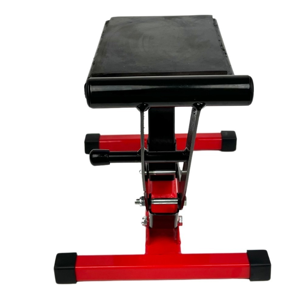 El caballete elevador manual de acero es una herramienta utilizada para elevar y sostener vehículos de forma segura durante trabajos de mantenimiento o reparación.