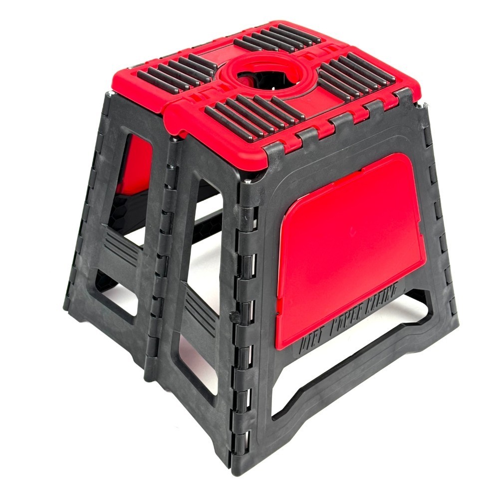 El Caballete Taburete Plegable RXF XL es la solución ideal para aquellos que buscan una herramienta de mantenimiento versátil y resistente para sus pit bikes y otros tipos de motos.